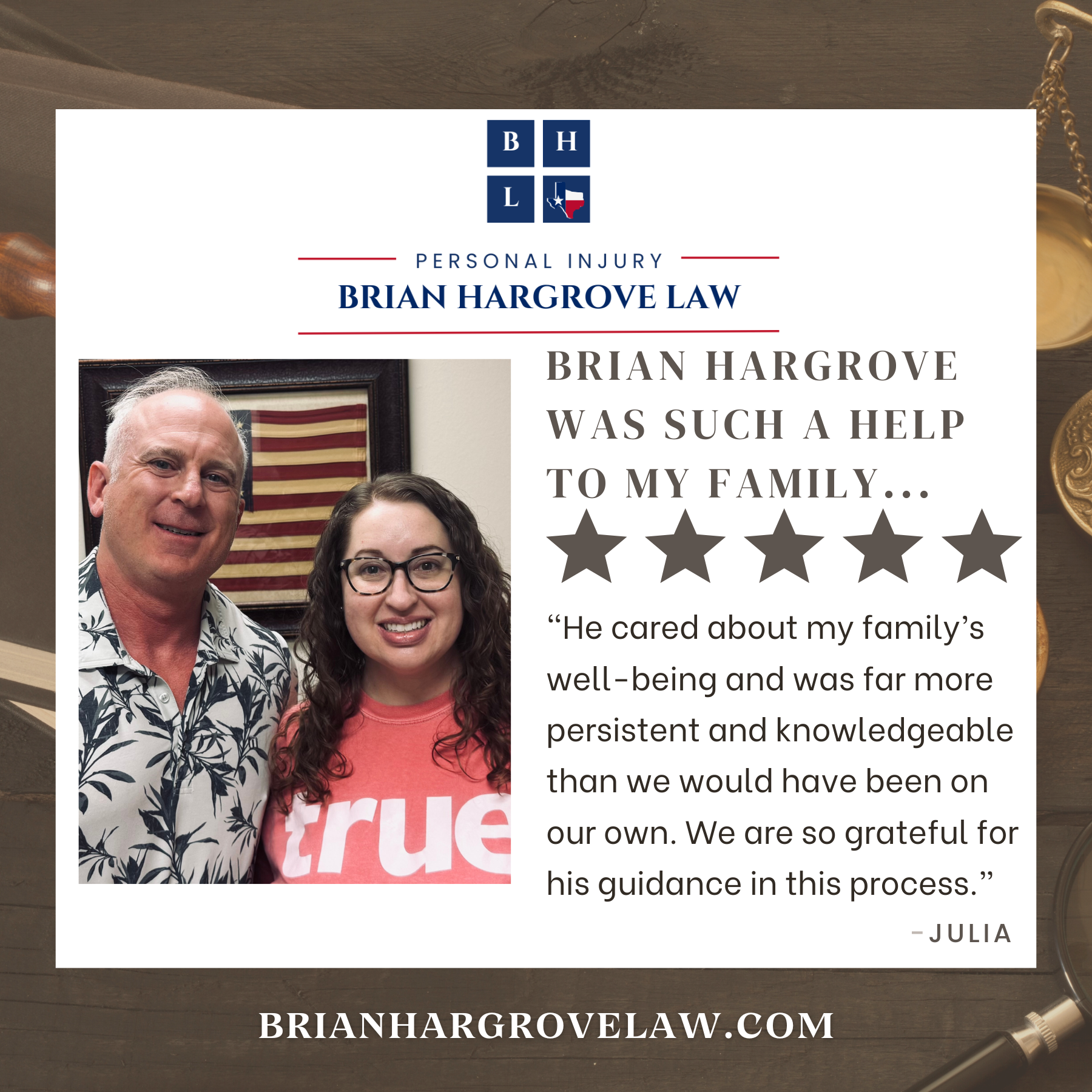 “I am thrilled to share my exceptional experience with Brian Hargrove Law! From start to finish, Brian demonstrated unparalleled expertise, dedication and genuine concern for my well-being. Knowledge and Expertise: Brian's in-depth knowledge of the law and intricate details of my case were impressive. His strategic approach secured an outstanding settlement. Personalized Service: What struck me most was Brian's willingness to take the time to explain every step, ensuring I understood the process. His empathy and commitment to achieving the best possible outcome were evident throughout. Results-Oriented: Brian's persistence paid off, resulting in an impressive check that exceeded my expectations. Recommendation: If you seek exceptional legal representation, look no further than Brian Hargrove Law. His unparalleled expertise, paired with genuine compassion, makes him an outstanding attorney. Rating: 5/5 stars Would I recommend Brian Hargrove Law? Absolutely!" - Dylan Type: Car Accident Location: Intersection of Bailey Boswell & Old Decatur Injury: Head, neck, and back injuries Originally Posted : Google